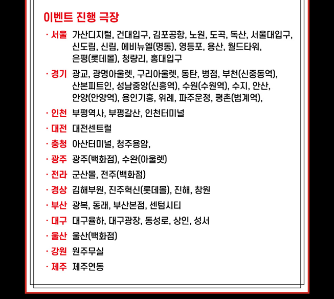 ※ 각 영화관(극장) 특전 및 이벤트 목록들은 이미지를 클릭하시면 더욱 잘 보이며 자세히 정보를 파악하실 수 있으니 꼭 클릭하셔서 확인하시길 바랍니다.