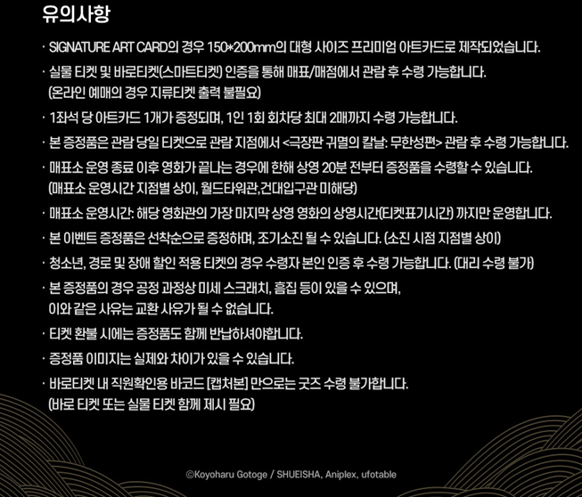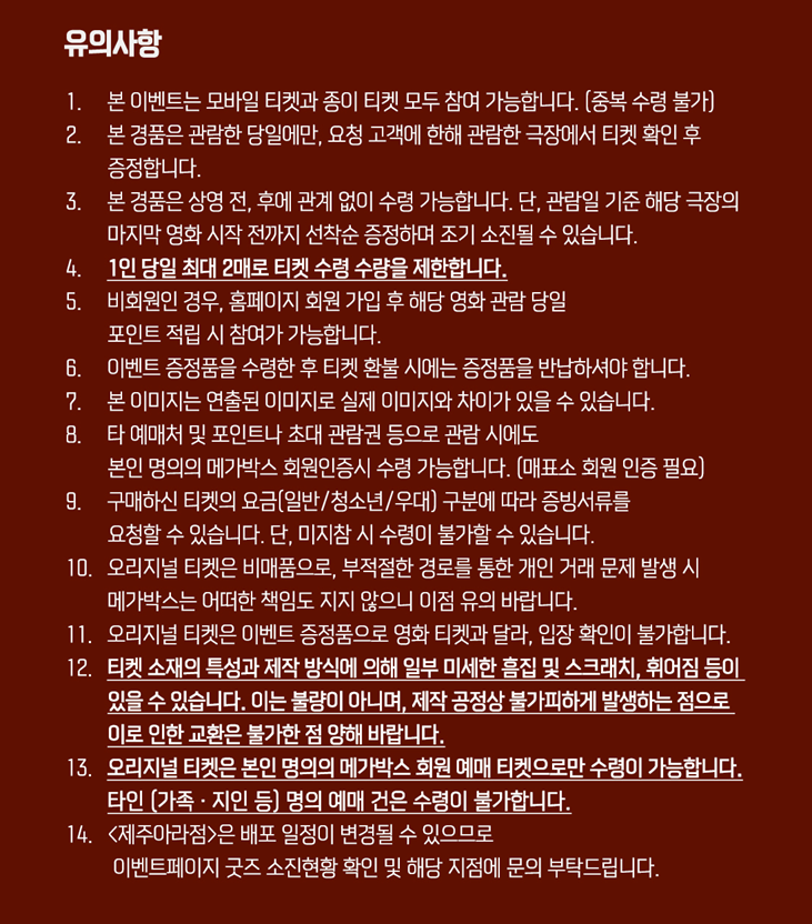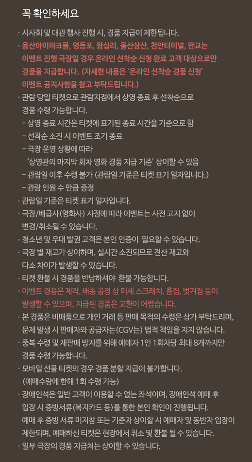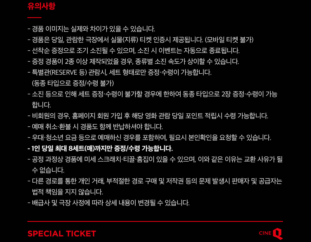 날짜 유의하시어 관람하시고 특전 수령하시길 바랍니다.