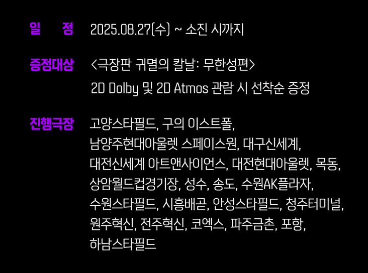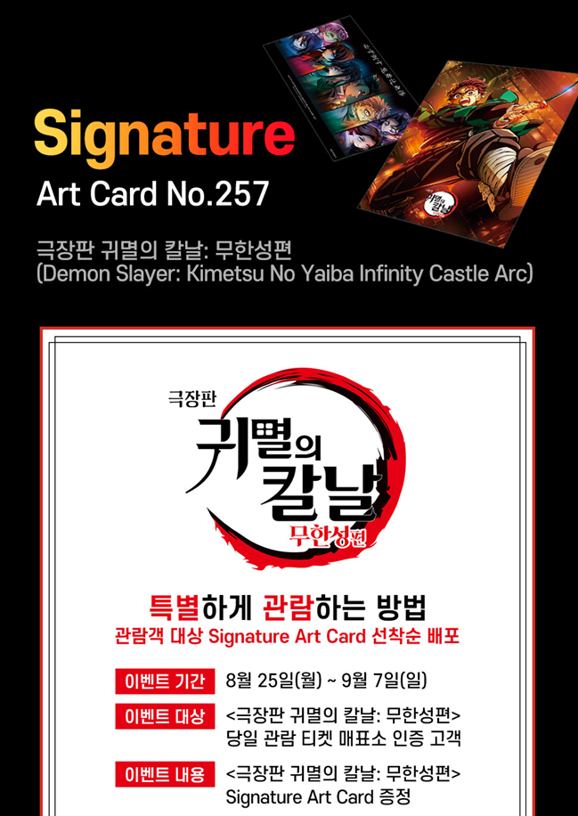 | [200만 관객 돌파! 애니메이션 극장판 <귀멸의 칼날: 무한성편> 2주 차 특전 목록] (1) | 2025.08.27 |