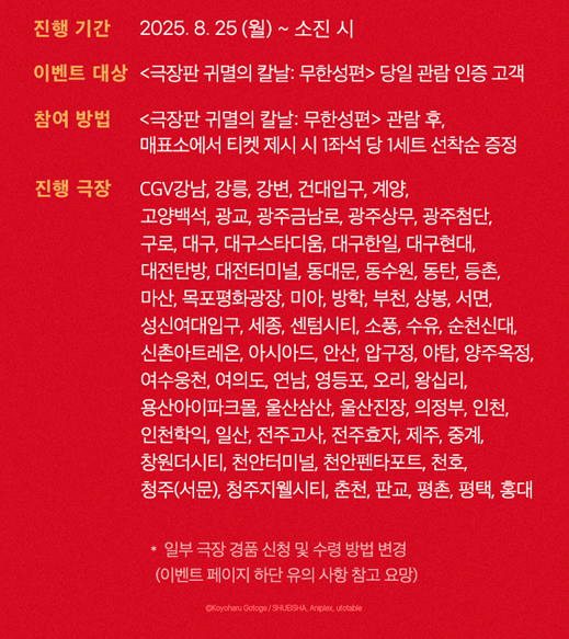 [애니메이션 극장판 <귀멸의 칼날: 무한성편 - 1부> 영화관(극장)별 굿즈 목록]