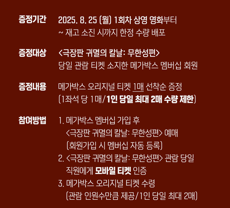메가박스 1주 차 특전은 오리지널 티켓입니다. 2025년 8월 25일 월요일부터 소진될 때까지 증정합니다.