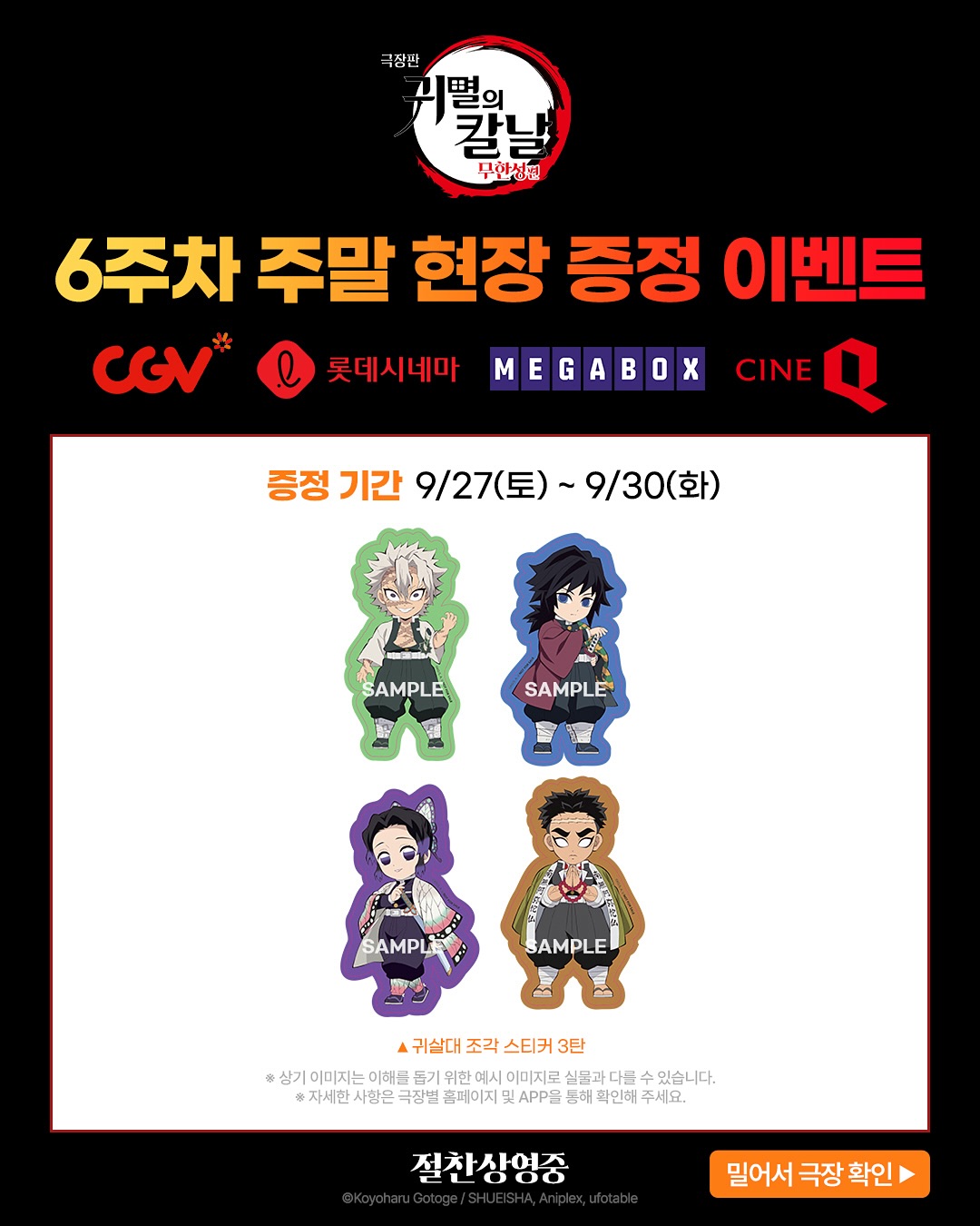 CGV, 롯데시네마, 메가박스, 씨네큐 6주 차 주말 특전 - 귀살대 조각 스티커 3탄