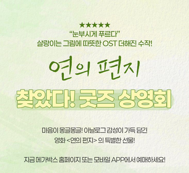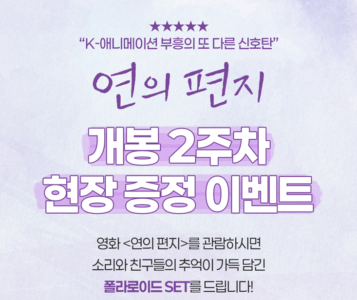 벌써 황금연휴가 훅훅 지나가서 5일째입니다. 저는 계속해서 여러 영화들을 보러 집 근처 영화관(극장)을 가고 있는데, 계속 영화들이 개봉하기 시작해서 보는 와중에 애니메이션 영화 <연의 편지>를 못 보고 있다가 "이번 2주 차 특전은 뭘까?" 싶어서 찾아보니 더욱 좋아서 소개합니다.