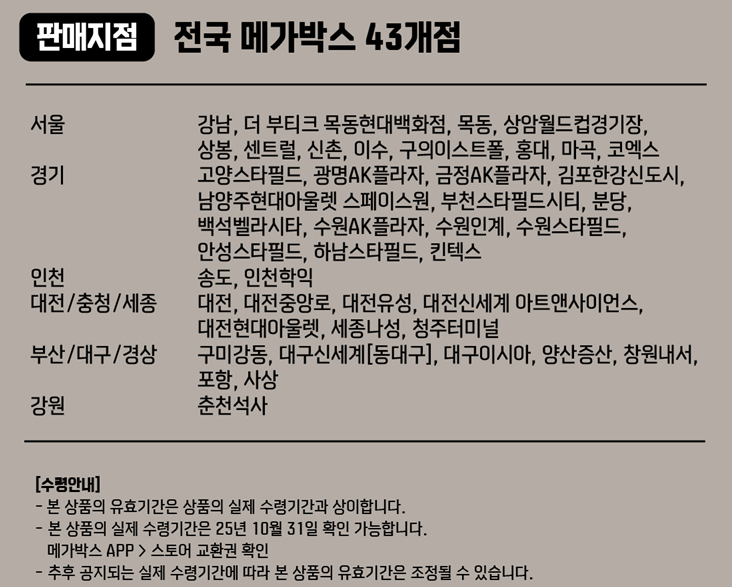 ★ 구매 방법: 메가박스 앱(APP)을 통해 가능. (웹사이트, 모바일웹, 현장 구매 불가)