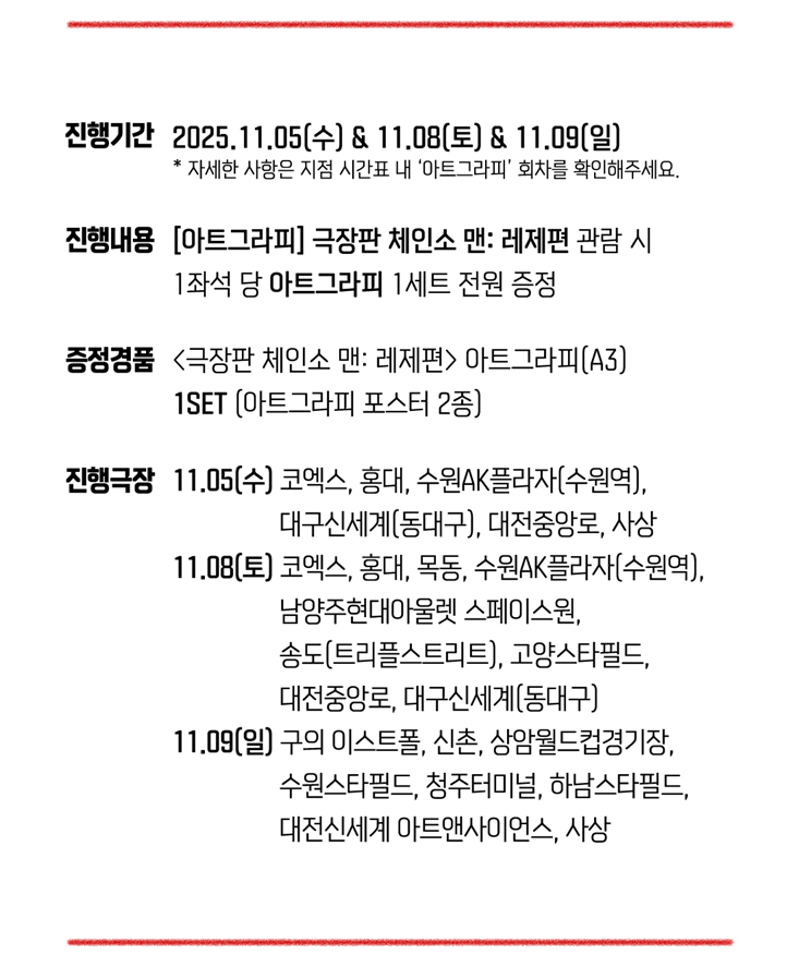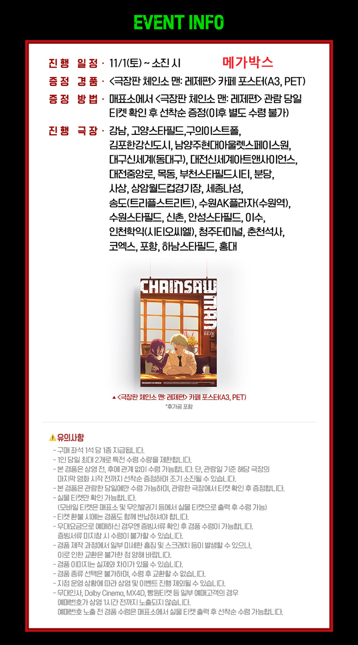 애니메이션 극장판 <체인소 맨: 레제편> 6주 차 주말 특전 목록 및 7주 차 상영회 특전 목록