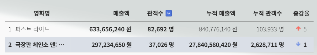 애니메이션 극장판 <체인소 맨: 레제편> 현재 누적 관객수 약 260만 명. 300만 명 넘을까?