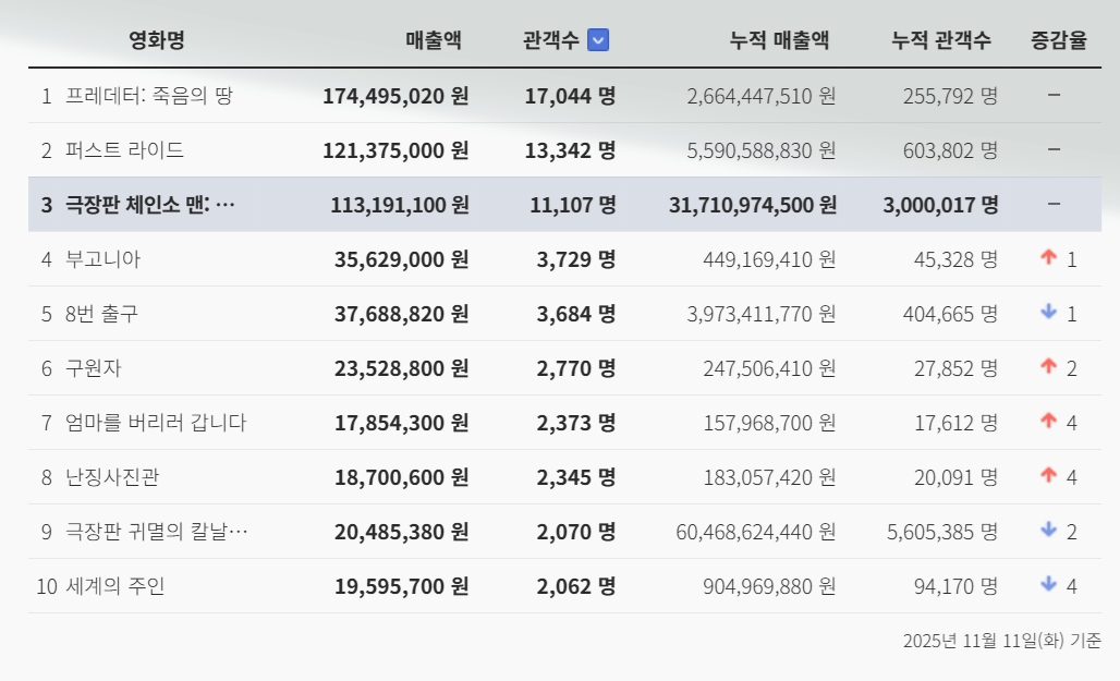 제 생각에 이번 주 목요일(13일)에 치러지는 2026학년도 대학수학능력시험과 맞물려서 더 많은 관객수를 기록하지 않을까 싶습니다.