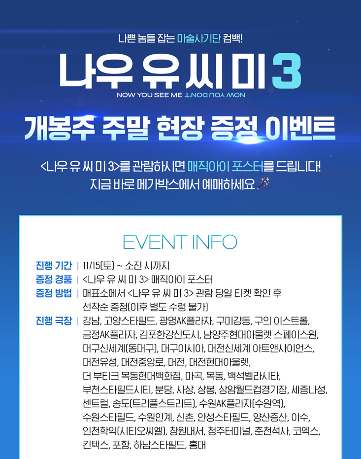 영화 <나우 유 씨 미 3> 1주 차 주말 특전 목록