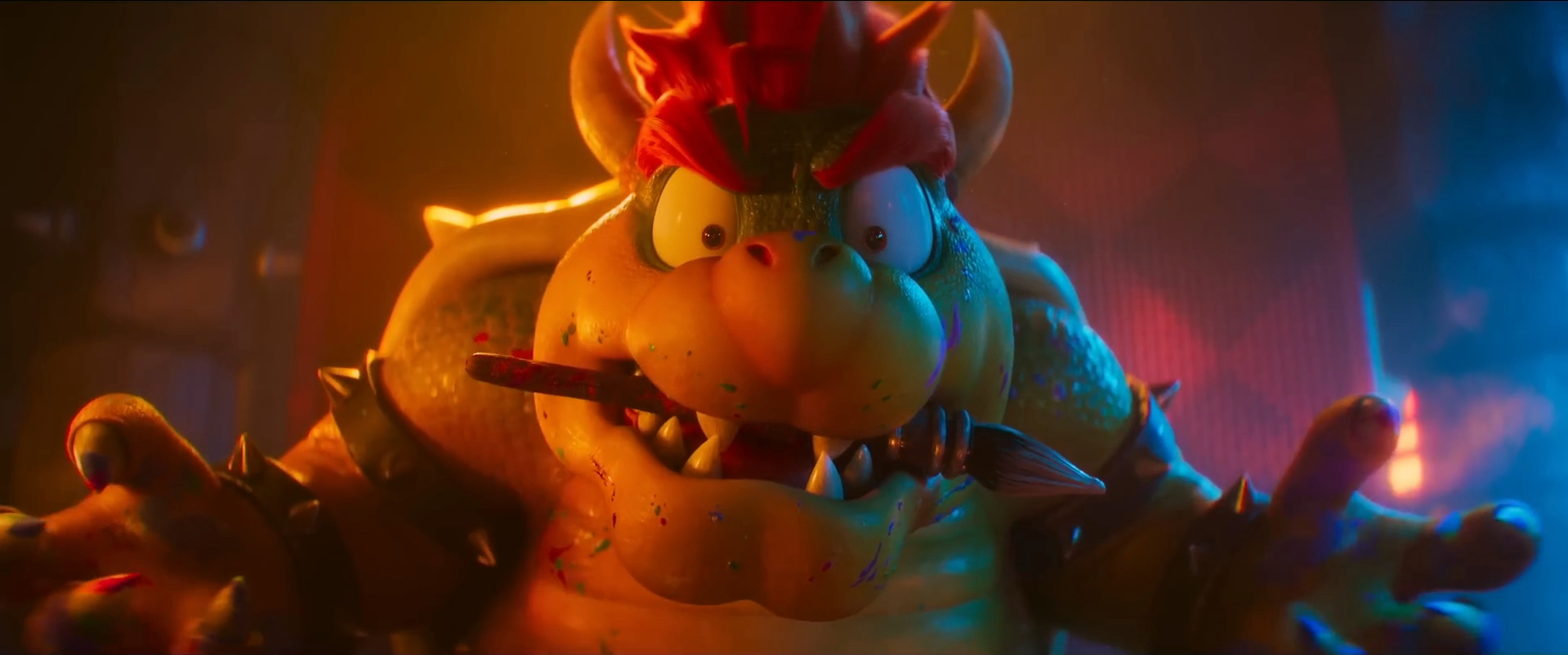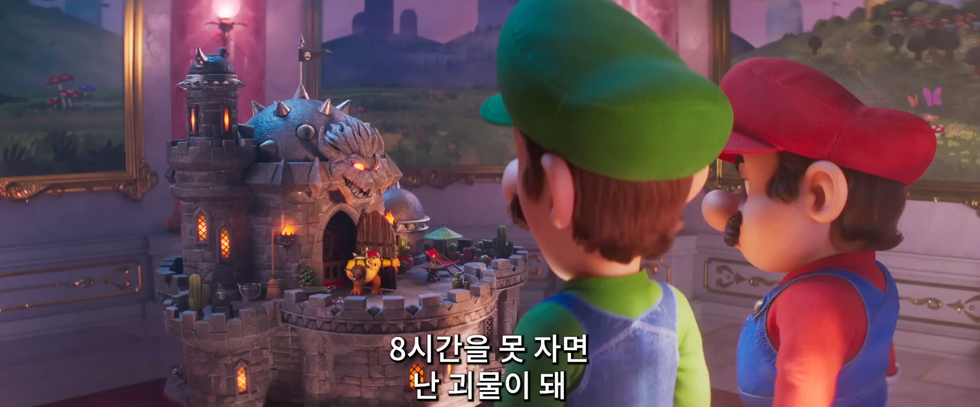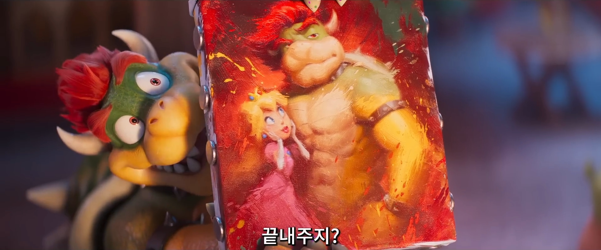 그리고 여기서 각색이 더해졌는데, 원작 게임에서는 쿠파 주니어가 원더 플라워의 에너지로 강화하지만, 이번 애니메이션 영화에서는 마법 붓 자체로 강화합니다. 즉, 결과는 그대로 가져오는 대신 영감이 되는 요소들만 살짝 바꿔 새로운 해석을 만들어낸 방식으로 연출했습니다.