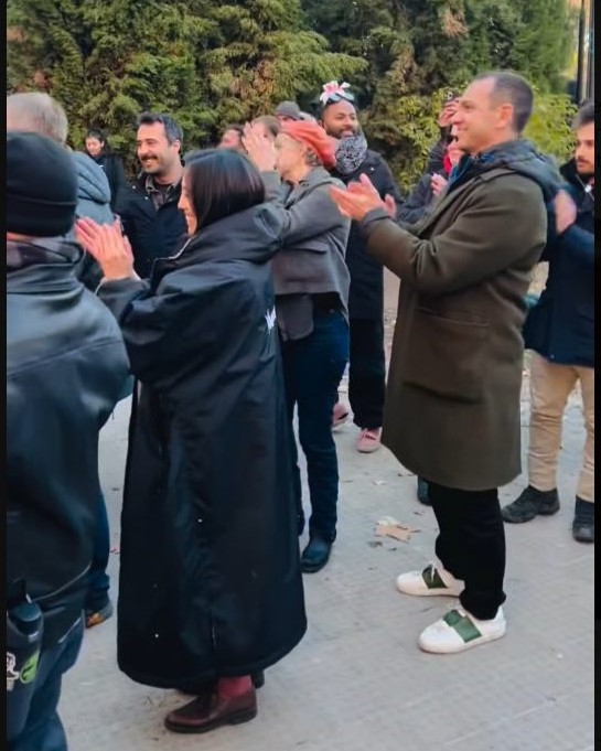 그들은 촬영 후에 기념사진을 찍었습니다. 배우 노만 리더스는 팬들과 샴페인을 터트렸고 감사 인사를 오랜 시간 하며 감사의 뜻을 전했습니다.
