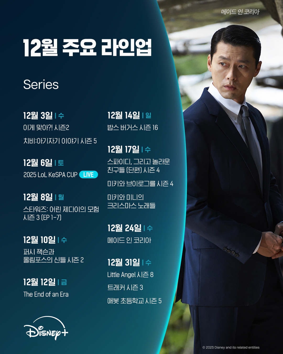 2025년 12월 "디즈니+(Disney+, 디즈니 플러스, 디플)"에 공개되는 작품들