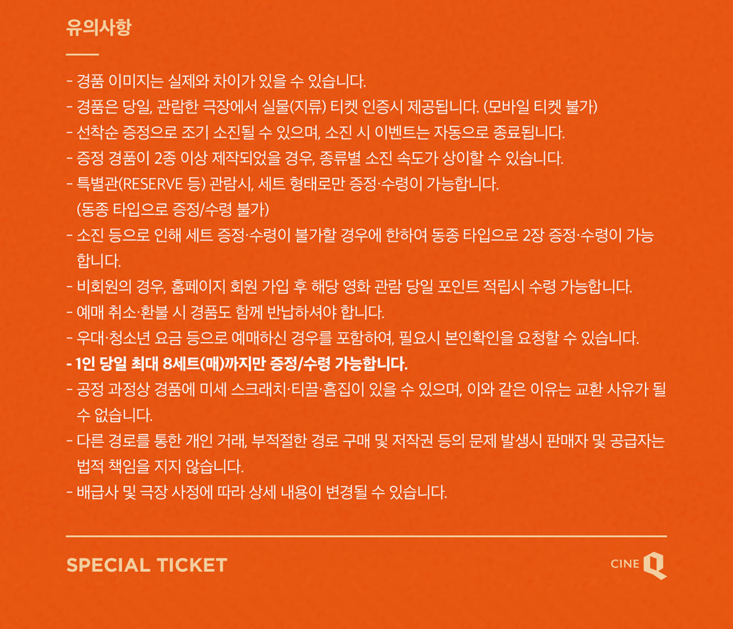 씨네큐(씨네Q, CINEQ) 1주 차 특전 - 스페셜 티켓