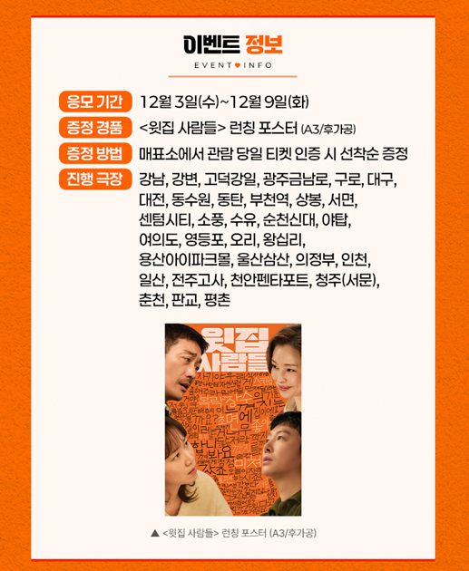 관객 유치를 위해 요즘은 모든 영화들이 무대인사와 함께 특전 경품 굿즈를 공개하는데, 이번 영화 <윗집 사람들> 역시 마찬가지입니다.