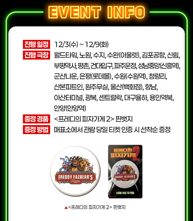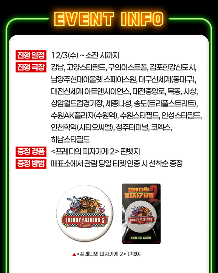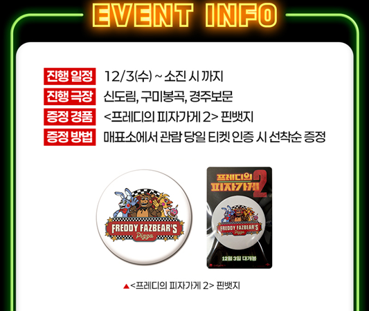 영화 <프레디의 피자가게 2> 1주 차 특전 목록