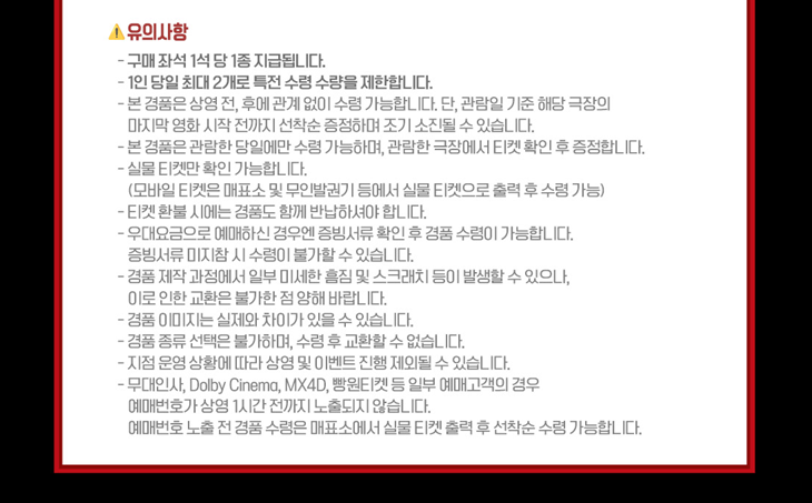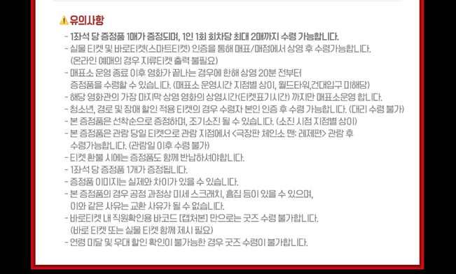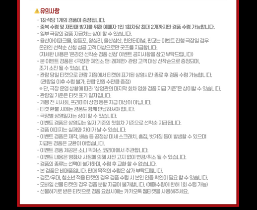 오늘도 역시 영화 관람과 동시에 특전 경품 굿즈를 수령하셔서 좋은 추억을 남기시라고 특전 경품 굿즈 정보를 올립니다.
