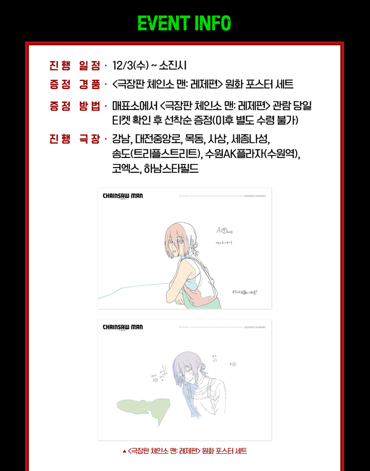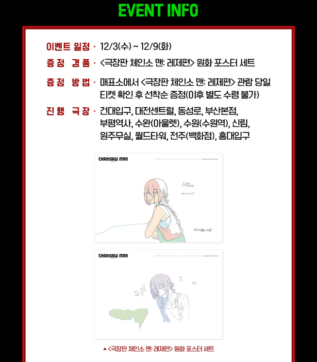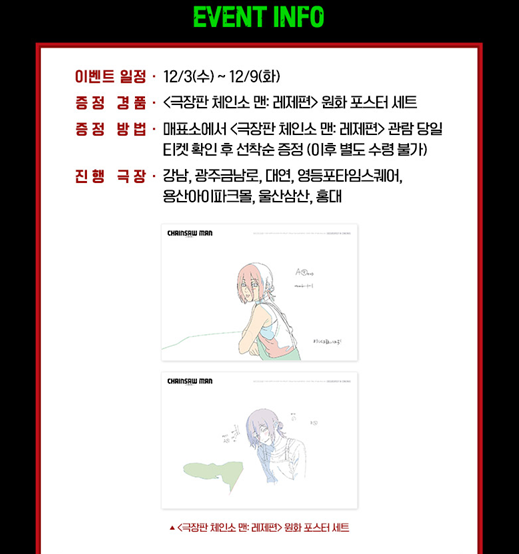 | [애니메이션 극장판 <체인소 맨: 레제편> 11주 차 주말 특전 목록] (0) | 2025.12.06 |