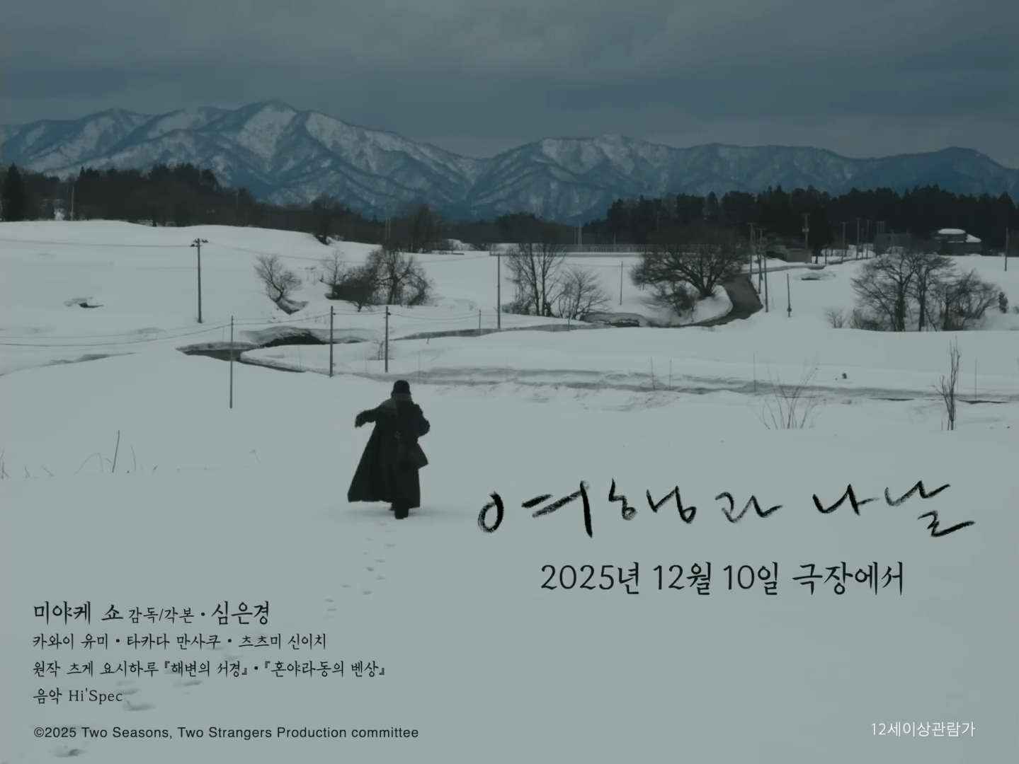 일본 영화 <여행과 나날>은 일본 현지에서 지난 2025년 11월 7일에 개봉했는데, 평가도 꽤 좋은 편입니다. 원작 만화는 츠게 요시하루의 만화 <해변의 서경>, <혼야라동의 벤상>이며, 우리나라는 한 달가량 지난 2025년 12월 10일 수요일에 영화관(극장)에서 개봉합니다.