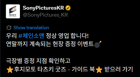 출처 : 소니 픽처스 코리아, CGV, 롯데시네마, 메가박스