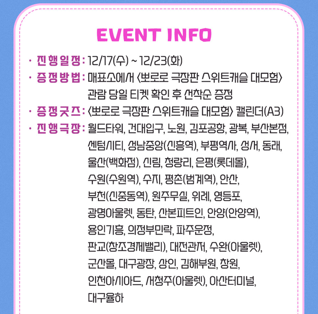 애니메이션 영화 <뽀로로 극장판 스위트캐슬 대모험> 2주 차 특전 목록