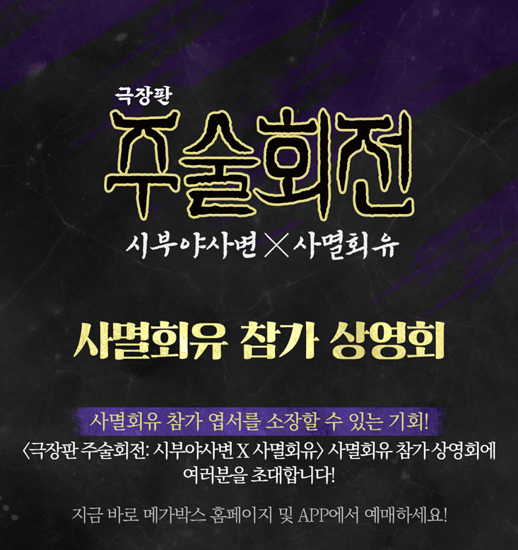 출처 : 대원미디어(주), CGV, 롯데시네마, 메가박스, 씨네큐(씨네Q, CINE Q), 메가박스중앙(주), MAPPA, TOHO NEXT, 주술회전 제작위원회