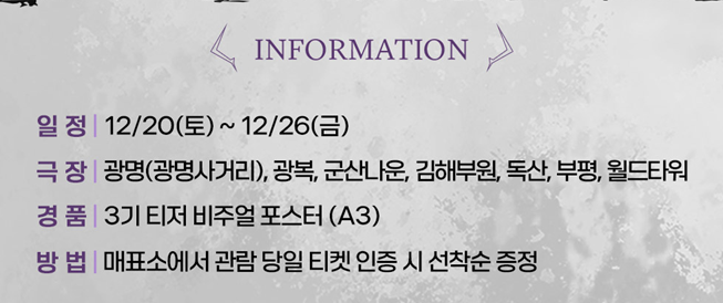 CGV 3주 차 주말 현장 증정 이벤트 - 3기 티저 비주얼 포스터(A3 사이즈)