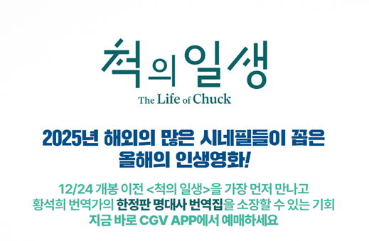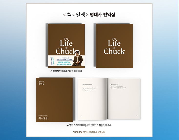 CGV 프리미어 굿즈 상영회 특전은 '한정판 명대사 번역집'입니다. 명대사책에 영어 원문과 황석희 번역가의 번역이 수록되어 있으며, 겉에 황석희 번역가의 스페셜 띠지가 둘러져 있습니다.