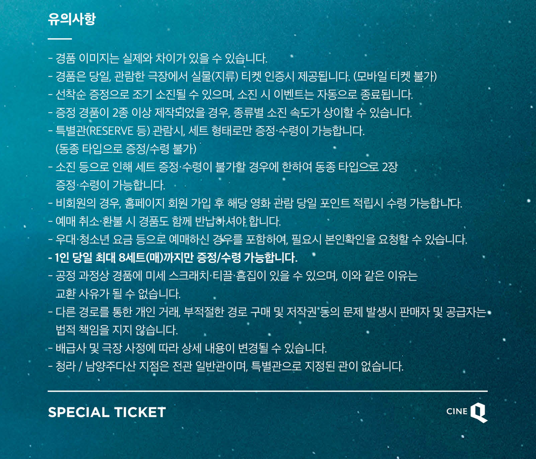 씨네큐(씨네Q, CINE Q) 1주 차 특전은 '스페셜 티켓'입니다.