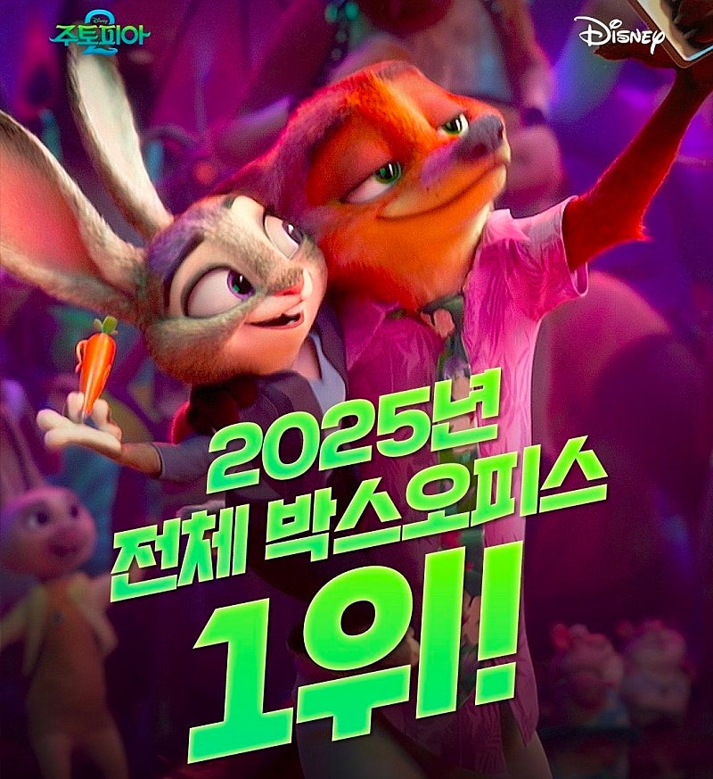 애니메이션 영화 <주토피아 2>, 2025년 한국 개봉 영화 흥행 순위 1위 달성!