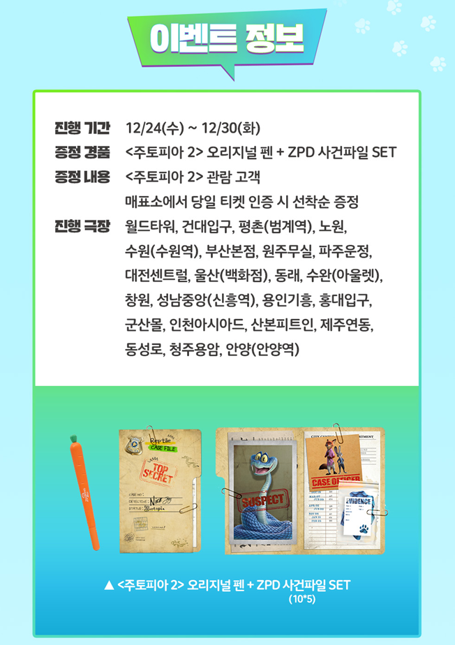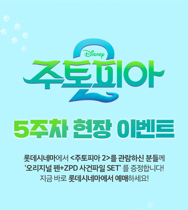롯데시네마 5주 차 현장 이벤트는 '오리지널 펜+ZPD 사건파일 세트'입니다.