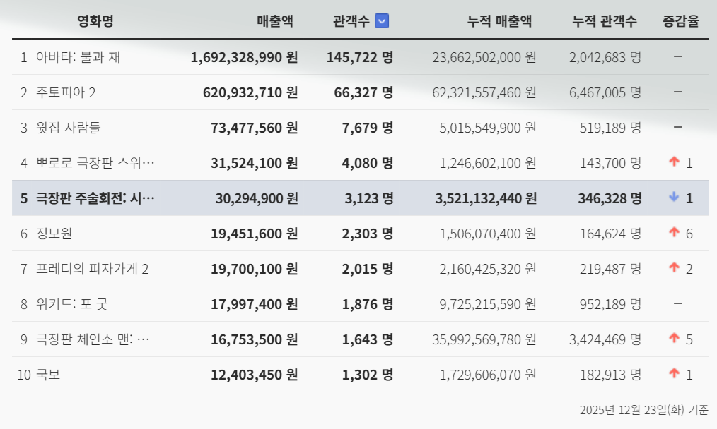 | [애니메이션 영화 <주토피아 2> 5주 차 특전 목록+2025년 한국 개봉 영화 흥행 순위 1위 달성!] (0) | 2025.12.23 |