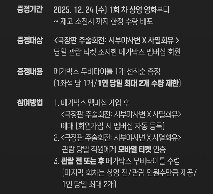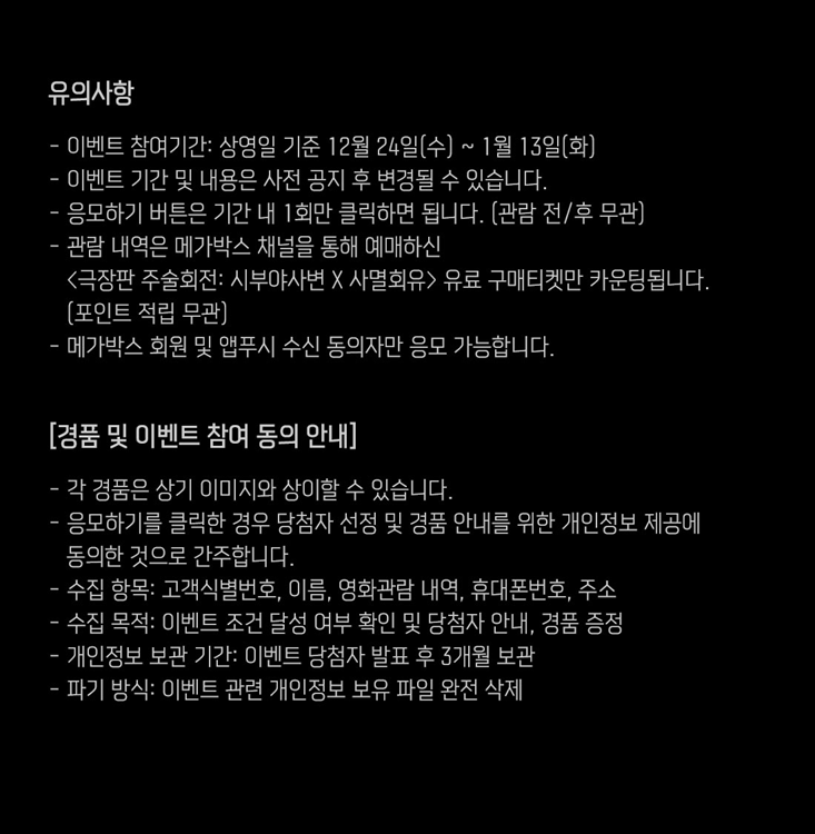 - 당첨자 발표: 2026년 1월 16일 금요일 (이미지 메가박스에서 잘못 기입)