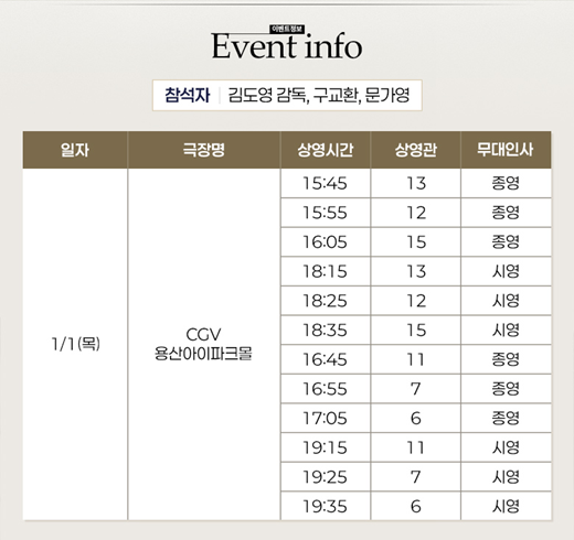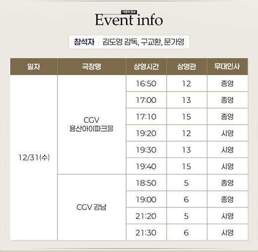 2025년 12월 31일 수요일. CGV 용산아이파크몰과 CGV 강남에서 진행됩니다. 자세한 시간은 이미지를 클릭하셔서 확인하시길 바랍니다.