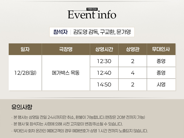 2025년 12월 28일 일요일. 메가박스 목동에서 진행됩니다. 자세한 시간은 이미지를 클릭하셔서 확인하시길 바랍니다.