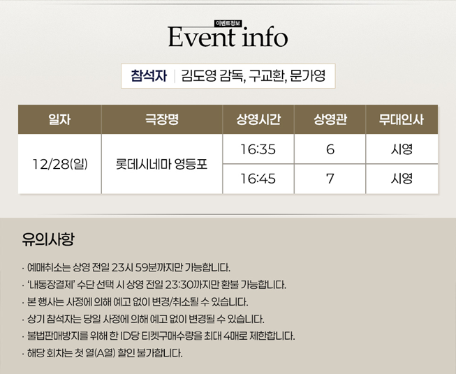 2025년 12월 28일 일요일. 롯데시네마 영등포에서 진행됩니다. 자세한 시간은 이미지를 클릭하셔서 확인하시길 바랍니다.
