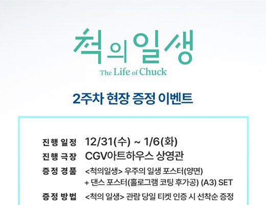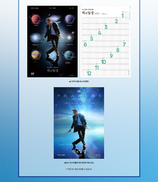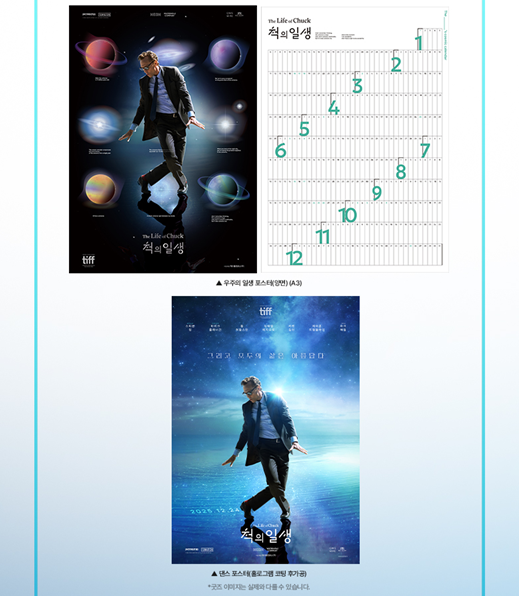 씨네큐 2주 차 현장 증정 이벤트도 역시 '우주의 일생 포스터(양면) + 댄스 포스터(홀로그램 코팅 후가공) 세트'입니다. A3 사이즈입니다.