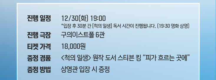 2025년 12월 30일 화요일 오후 7시. 메가박스 구의이스트폴 6관에서 진행됩니다.