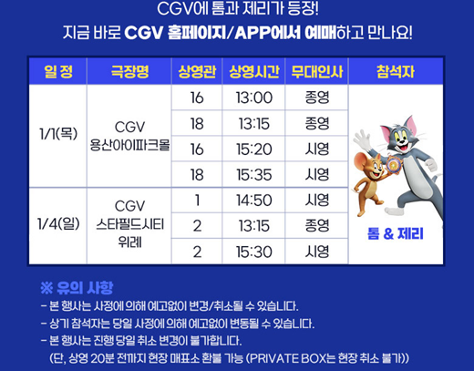 CGV 개봉주 무대인사로 '톰과 제리'가 참석합니다.