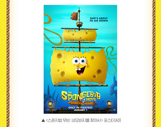 이번 작품은 애니메이션 <네모네모 스폰지밥: 시리즈>의 4번째 극장판 영화로, 북미에서 지난 2025년 12월 19일에 개봉했고, 한국엔 드디어 새해 첫날에 개봉합니다. 스폰지밥과 절친 뚱이가 해적선을 찾아서 진정한 빅 가이가 되기 위해 위험천만한 모험을 떠나는 내용을 담았다고 합니다.