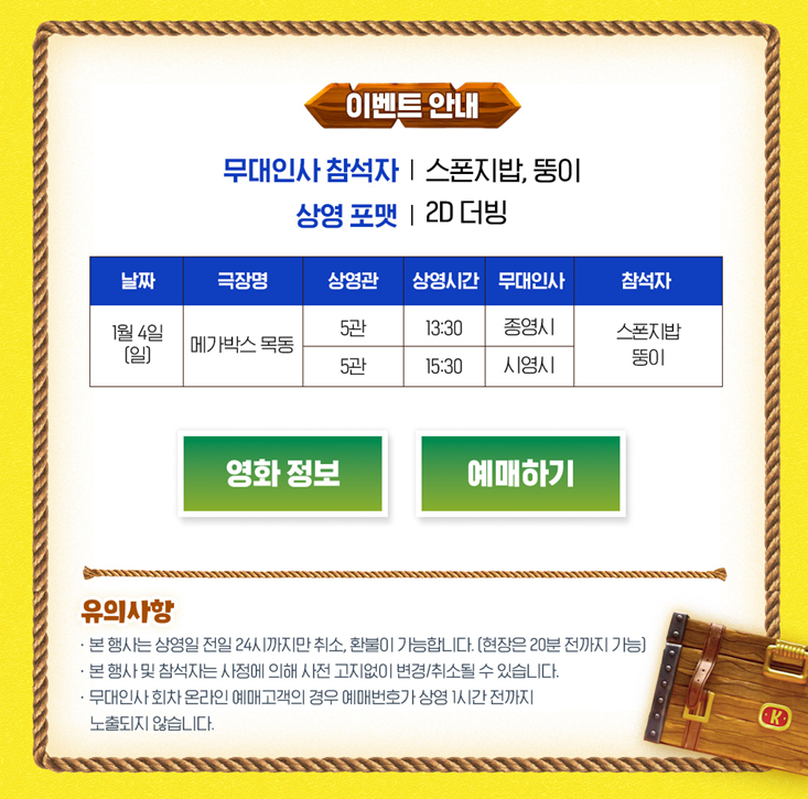 새해도 역시 영화 관람과 동시에 특전 수령과 무대인사로 특별한 경험을 선사하고 싶으신 부모님들을 위해 정보를 공유합니다.