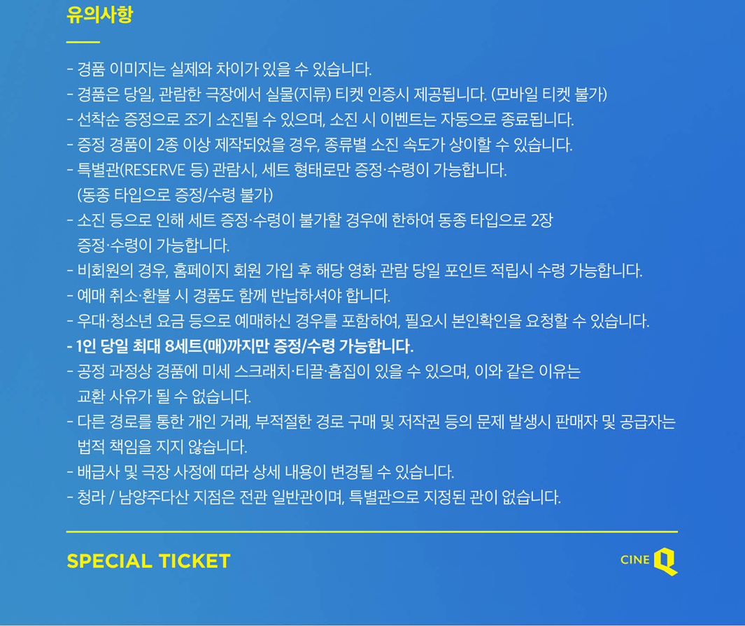 씨네큐(씨네Q, CINE Q) 1주 차 특전은 '스페셜 티켓'입니다.
