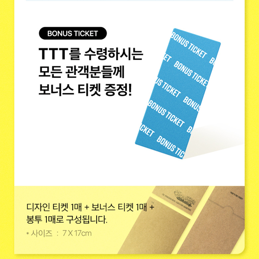 CGV 1주 차 특전은 'TTT(That's The Ticket)'입니다. 앞면에 부분 투명 홀로그램과 부분 코팅 효과가, 뒷면에 부분 투명 홀로그램 효과가 들어가 있습니다.