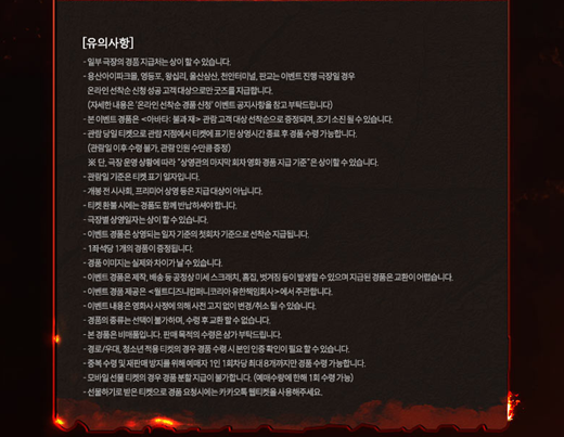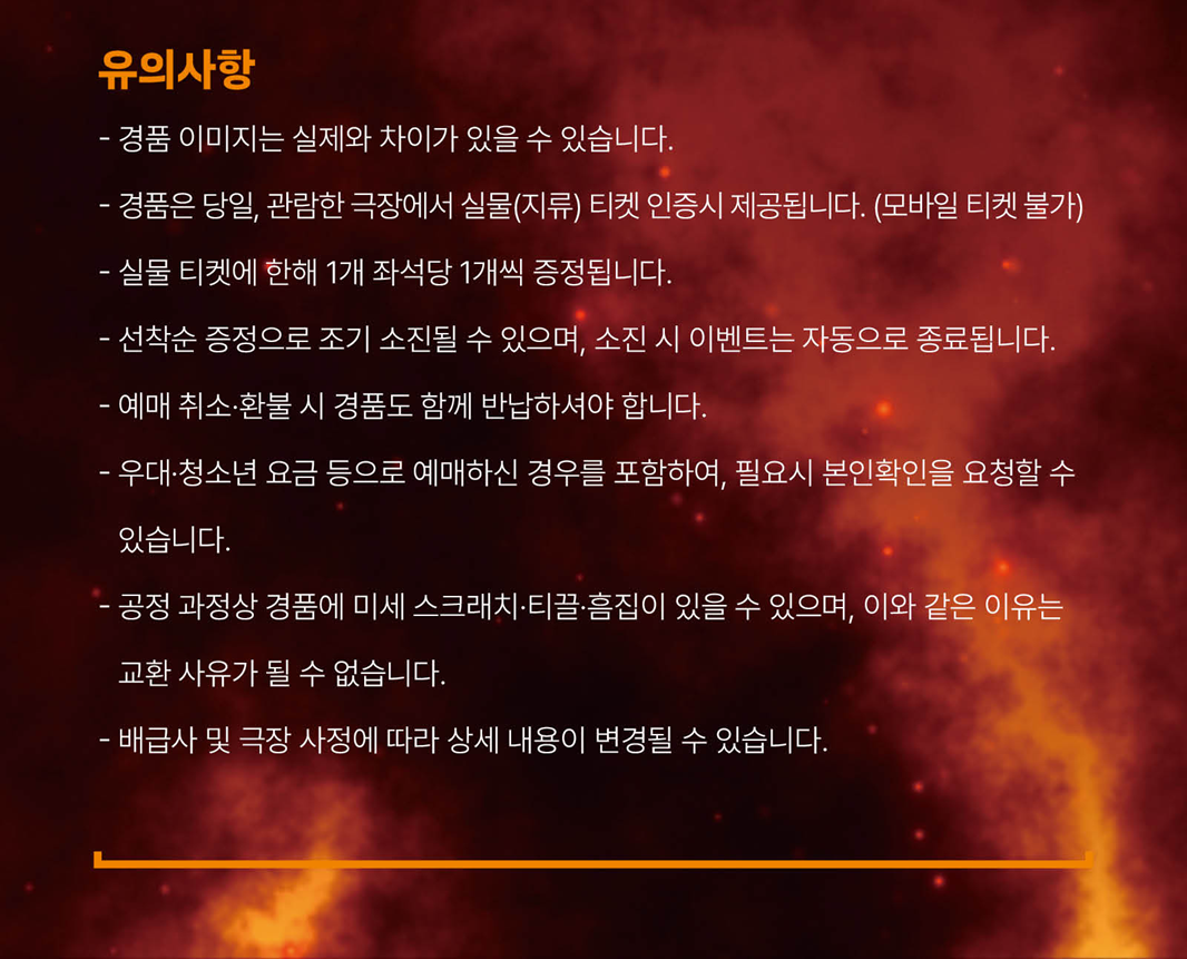 ※ 영화관(극장) 특전 및 이벤트는 이미지를 클릭하시면 잘린 곳 없이 전체적으로 자세하게 확인이 가능합니다. 명확하게 내용 파악 및 유의사항 파악을 위해 꼭 클릭하셔서 정보를 확인하시고 특전 수령과 이벤트 참여에 불찰 없으시길 바랍니다.
