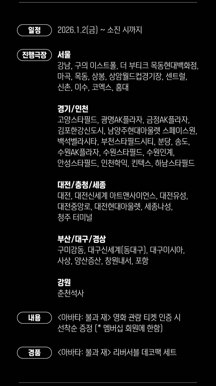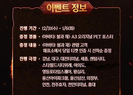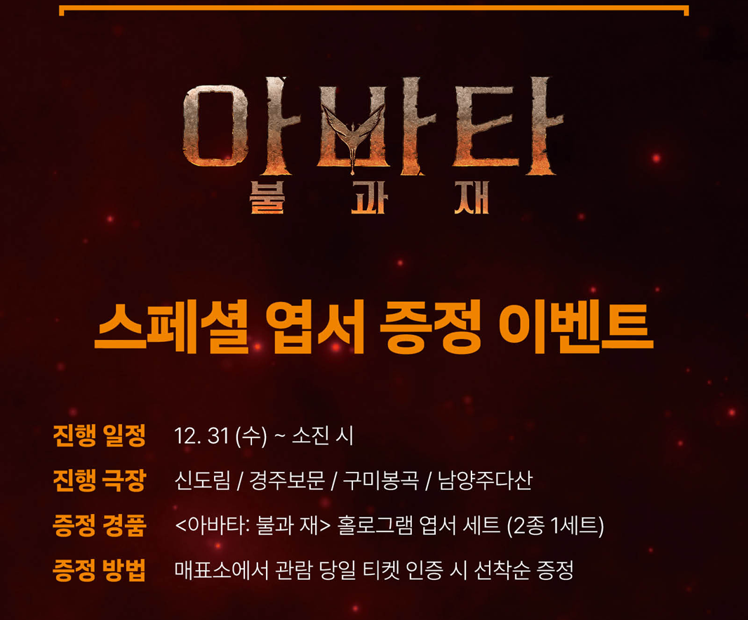 영화 <아바타: 불과 재> 3주 차 특전 목록
