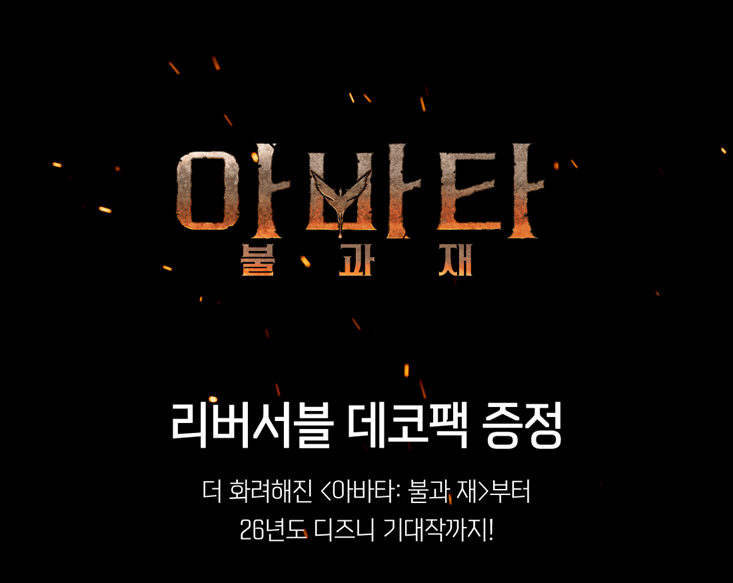 영화 <아바타: 불과 재>부터 2026년도 디즈니 기대작에 대한 리버서블 데코백을 증정합니다.