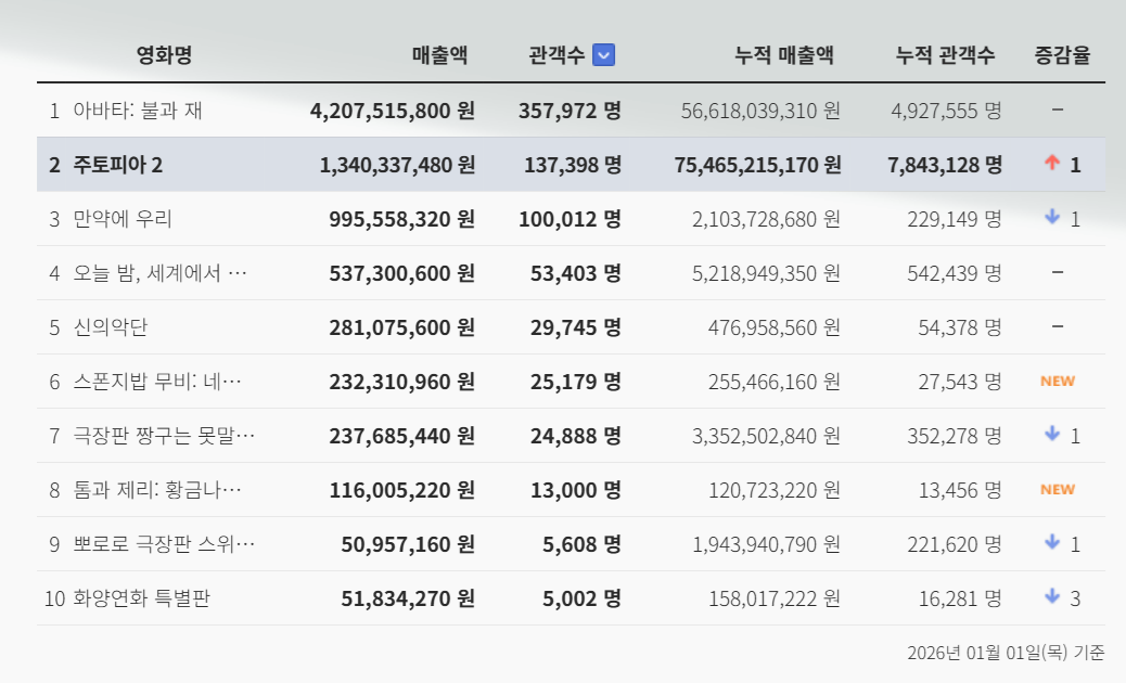 애니메이션 영화 <주토피아 2> 누적 관객수 780만 명 돌파!