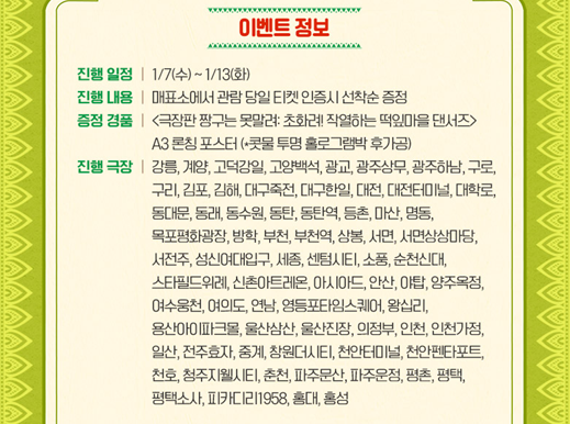 메가박스도 역시 3주 차 현장 이벤트는 'A3 론칭 포스터'입니다. 맹구 콧물 부분에 투명 홀로그램박 후가공이 되어 있습니다.
