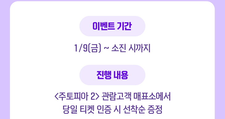 2026년 1월 9일 금요일부터 소진될 때까지 증정합니다. 진행하는 곳이 정말 적습니다. 선착순이니 확인 후 이른 시간에 관람하셔서 수령하시야 할 것 같습니다.