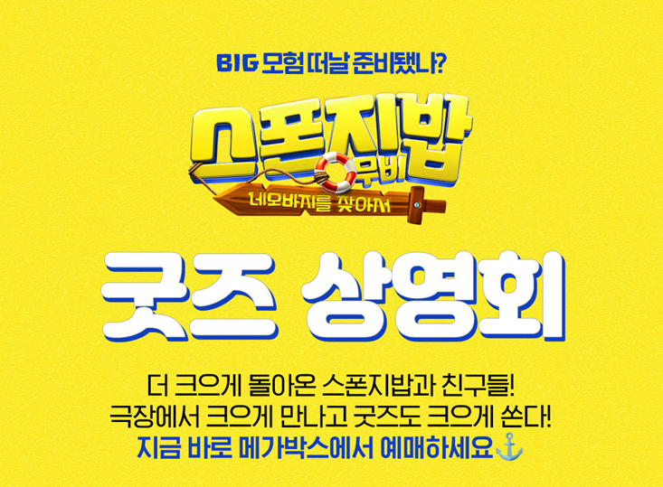 메가박스 굿즈 상영회 특전은 '스폰지밥, 뚱이 오너먼트 세트 & 타투 스티커'입니다.