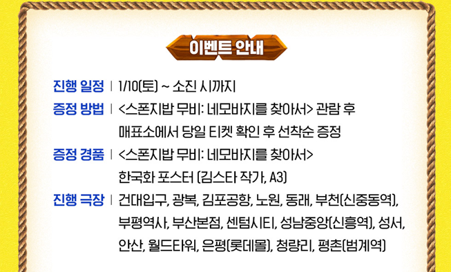 롯데시네마 2주 차 주말 현장 이벤트도 역시 '한국화 포스터'입니다. A3 사이즈이며, 일러스트레이터인 김스타 작가가 그렸습니다.