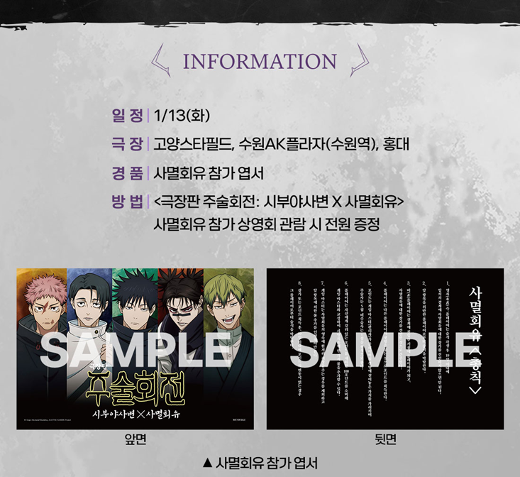 애니메이션 극장판 <주술회전: 시부야사변 X 사멸회유> 6주 차 주말 특전 목록